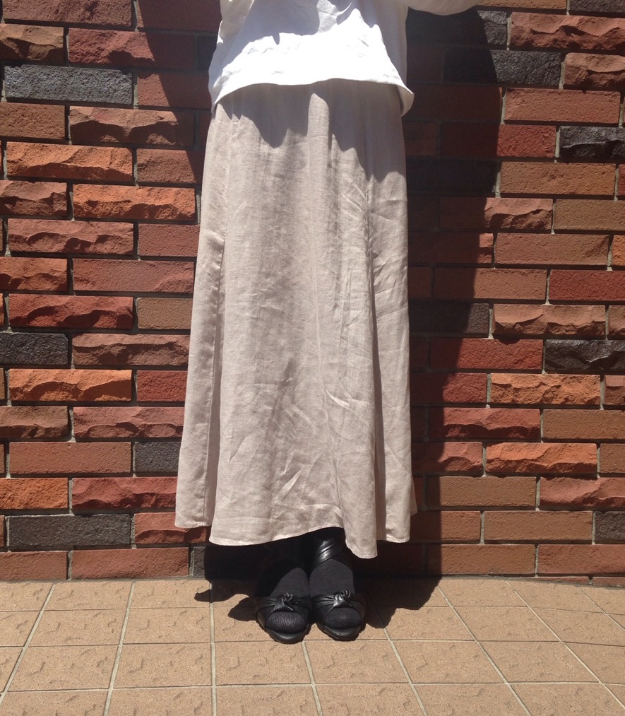 そして、スカートは夏らしく涼しげな色と素材(麻)を選びます。