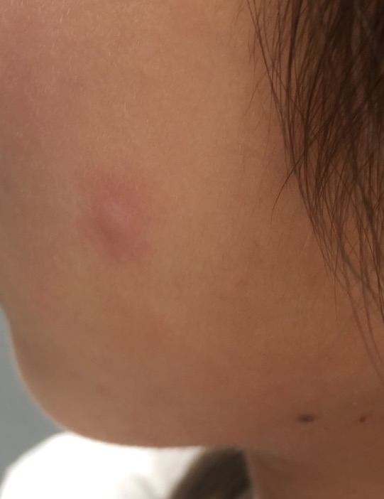 すると、子供の頬骨のあたりにニキビ?のようなものがすぐにできました。