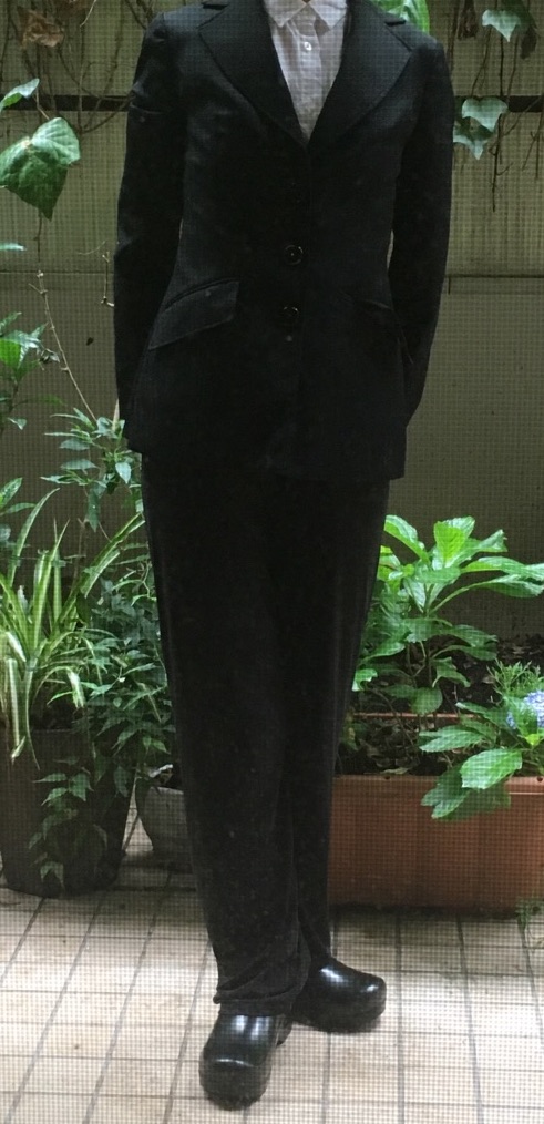 今回は、服装チェックが厳しく行われるわけでもないので、足元がかくれるパンツスタイルのスーツで出かけました。