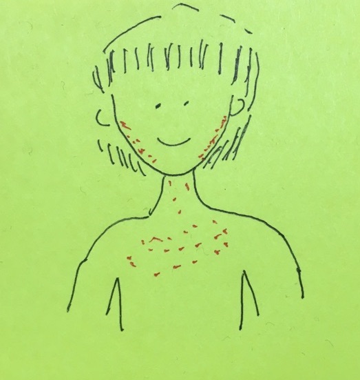 この週は一度おさまっていたアトピーがば〜っとほおから首、首から胸部にかけて出てきてしまいました。