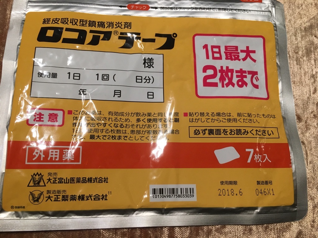 痛み止めなのですが、劇薬なので1日の枚数は必ず守るようにと言われて、嬉々として貼り、またスポーツへでかけます。