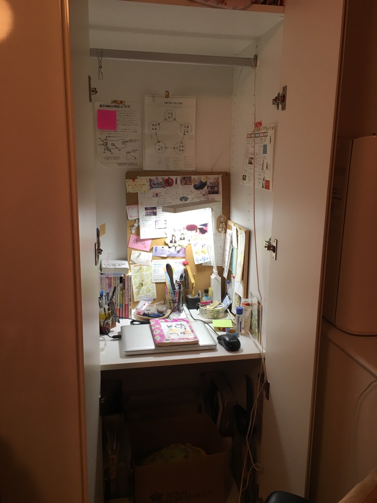 3人で暮らすのは狭いもので、ここを私の作業場にしたんです(・・;)