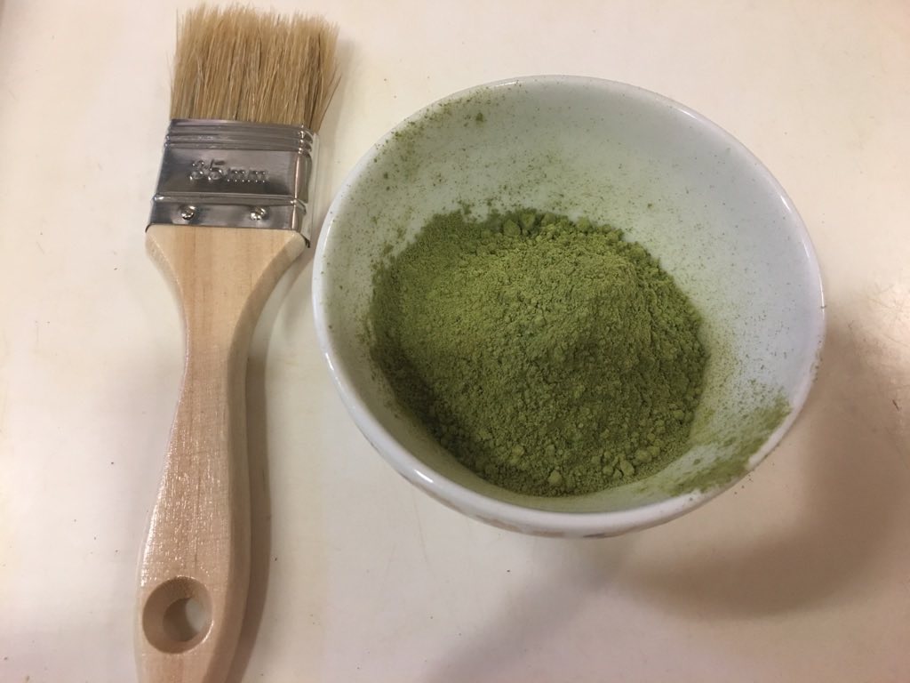 黒と緑でわかりにくいのですが、地肌に塗り込む感じです。