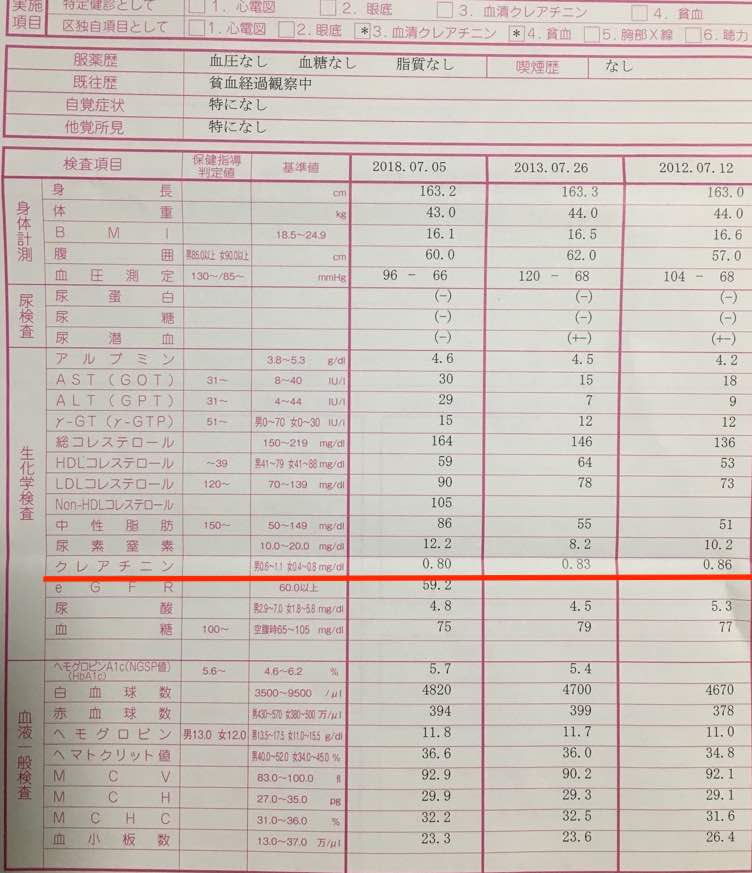 2019年の健康診断の結果はこちらです。なんと長年悩まされていた貧血がなくなっていて驚きました!