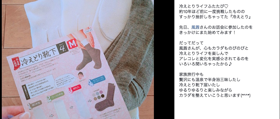 オンライン冷えとり茶話会に参加された2名の方は、茶話会で冷えとりの良さを感じてくださり、すぐに靴下を購入されました。