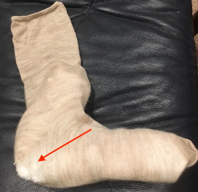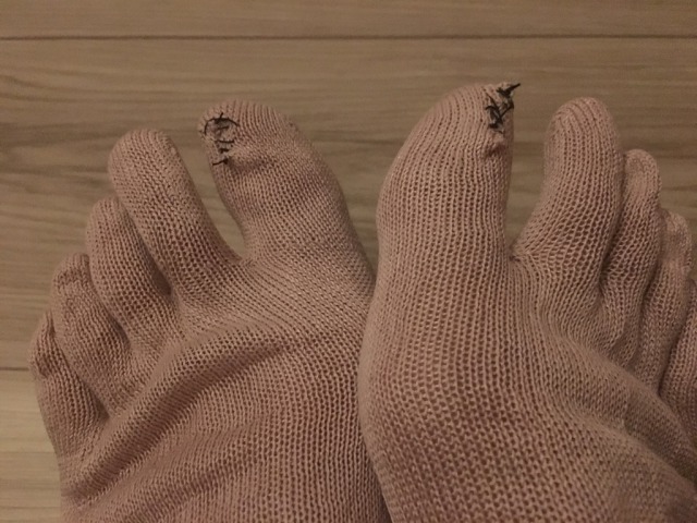 一番外側の靴下(8枚目)は立て続けに3枚破けました。普段は破けることがあまりない部分と8枚目の靴下です。