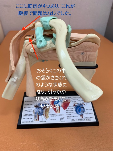 まず、問診をして、レントゲンで骨を、エコーで腱板をみました。