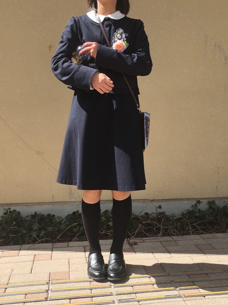子供は、すでに制服がありましたが、本人の希望で昨年卒業式の時に着用したワンピースを着て参拝しました。(靴下はシルクのハイソックス靴下とコットンのハイソックスを重ねています。スカートの中に長めのシルクのスパッツを折って履いています。ポシェットは参拝直前で外します。)