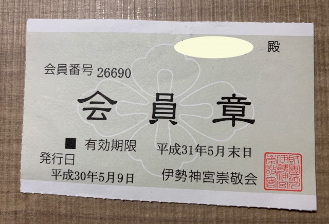神宮特別参拝は1年間(正会員・会員)有効、準会員は1回限り