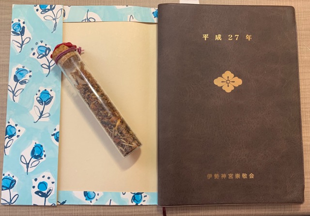 寄附の金額はとくに指定はありませんが、寄附の金額によって授与されるものは変わります。以前、会員証を忘れてしまった時に3.000円を奉賛金として寄附したときは、小冊子と3枚の伊勢神宮の絵葉書をいただきました。