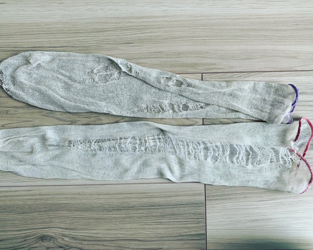 この治療中に不安や注射への恐怖から、こんなに靴下が破けてしまいました。破けた部分は恐怖に弱い腎臓の部分です。