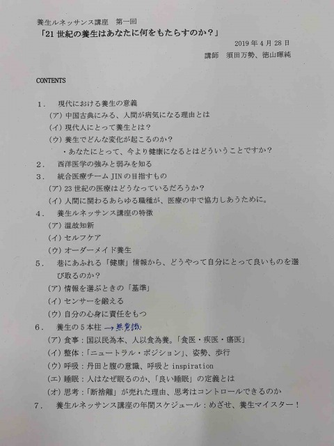 養生ルネサンス講座情報