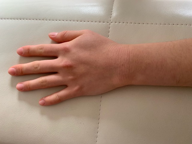 こちらが甘いものや食べ過ぎをやめてからの手です。赤みがとれて、だいぶきれいになってきました。