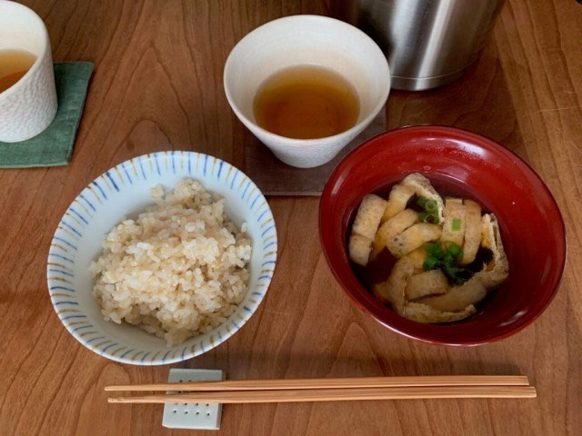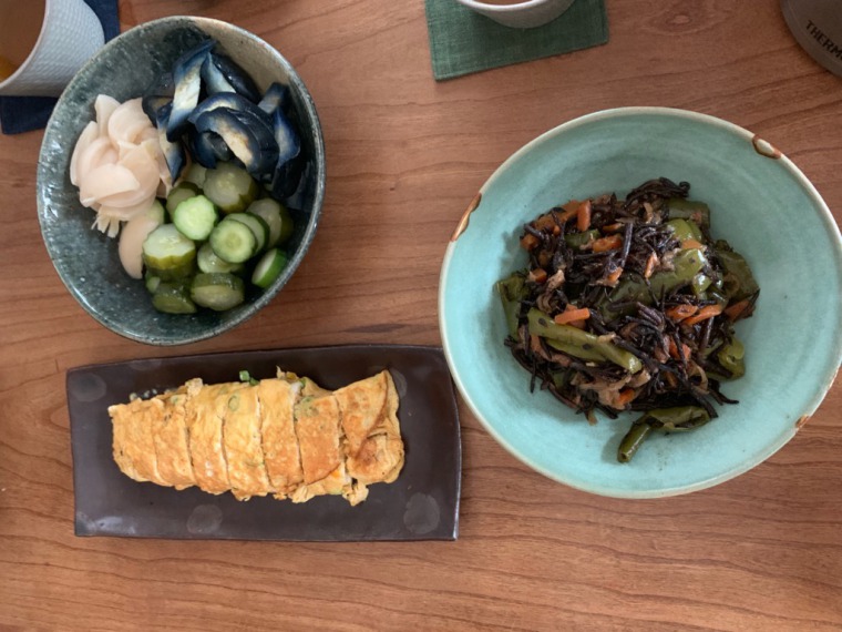 そして、青木さんお手製のランチはとてもおいしかったです。玄米、だし巻き卵、ひじき、お漬物、梅干しなど健康に良さそうなものばかりでした。