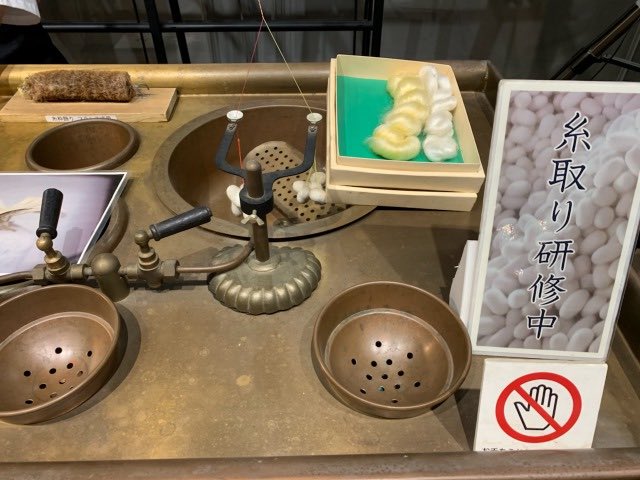 こちらは中に入って、パネルで解説を読めたり、手動の糸繰機を見学できました。