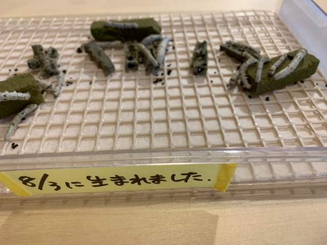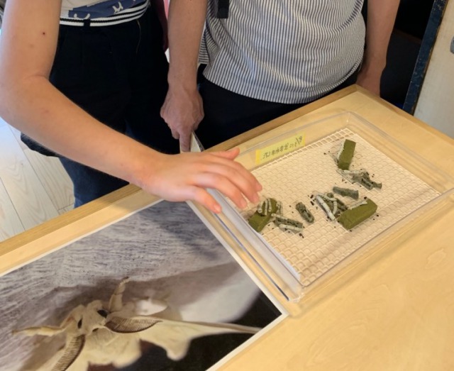 左の写真は成長したお蚕さんです。意外とかわいいですよね!