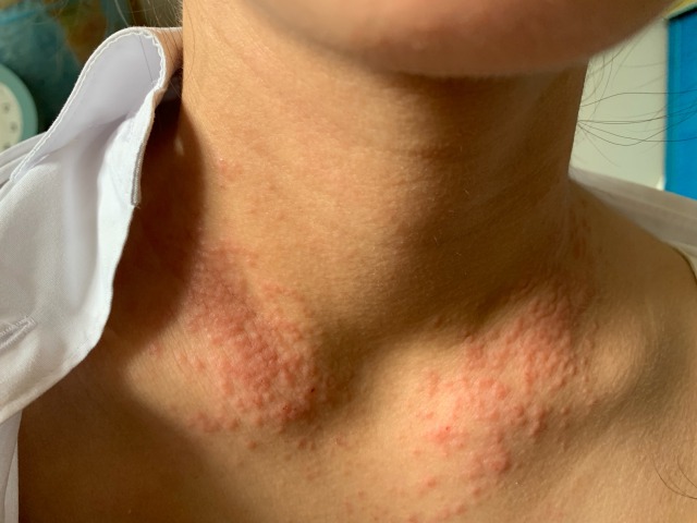 立秋の翌日に花火大会がありました。猛暑の中おしゃれをして、ネックレスをつけた子供は、アレルギーが出てしまい、一気にぶつぶつが出てしまいました。