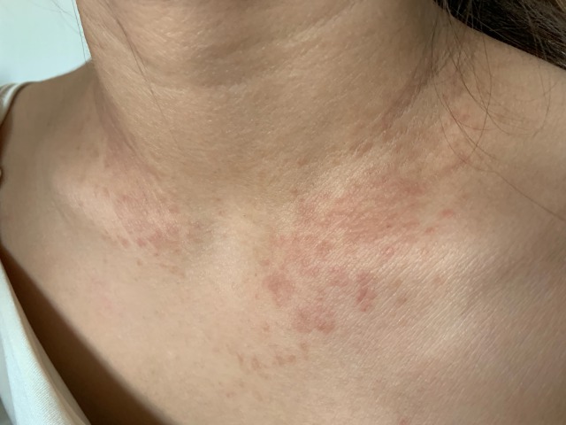 ぶつぶつはとれて、うっすらとした赤みだけ残っていますが、よくなってきたのです。