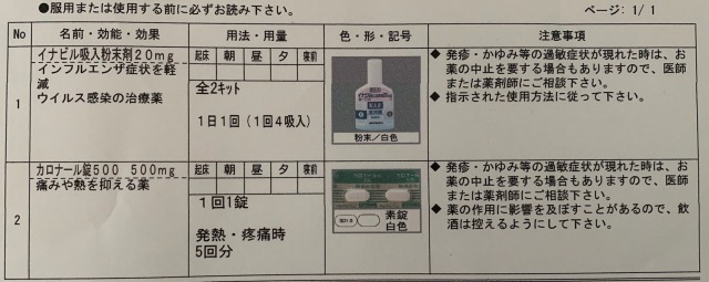 ここで38.1度に。病院ですぐにイナビルを使用しました。