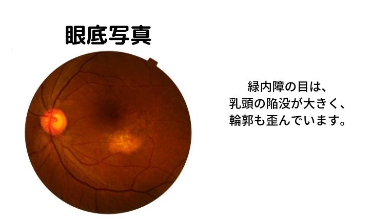健康診断の眼圧の数値から診断されることが多いのですが、眼底検査でも視神経乳頭部が変形していると緑内障の疑いがあると診断されます。