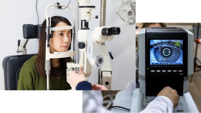 眼底検査、視野検査、散瞳検査を受けて診断されます。