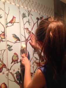 選んだのは、外の木に鳥がたくさん止まっているデザインの壁紙。