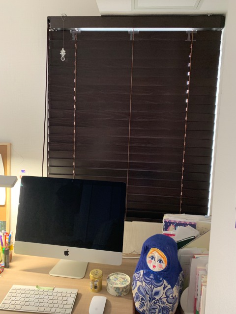 ブラインドには、いろいろな種類がありますので、お部屋のイメージに合わせて選ぶと良いです。私の部屋はオトナ女子のエレガントスタイルを目指したので、木製の色の濃いタイプのものを選びました。