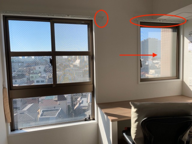 実はカーテンレールがはみ出していたので、カーテンが机に、ばさっと被ってしまうのも、イライラの一つでした。