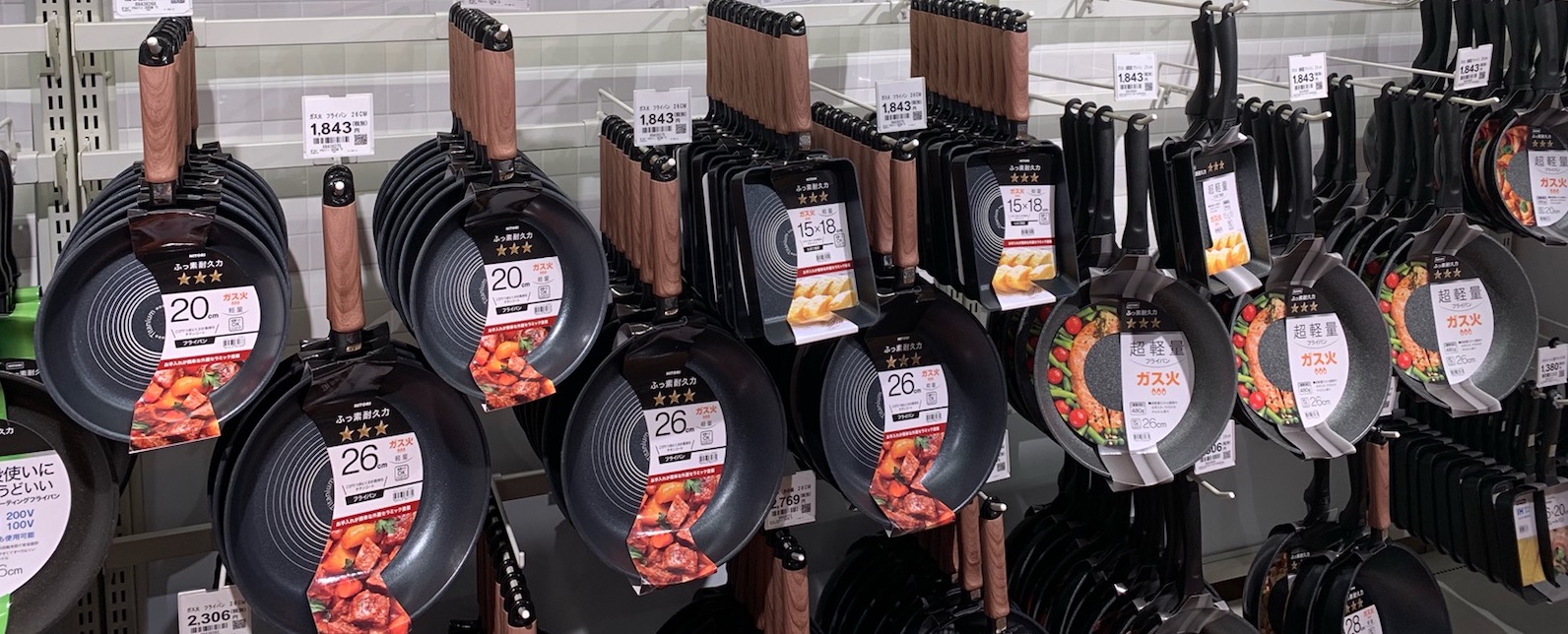 ニトリに行くと、フライパンコーナーには本当にたくさんのフライパンが並んでいました。